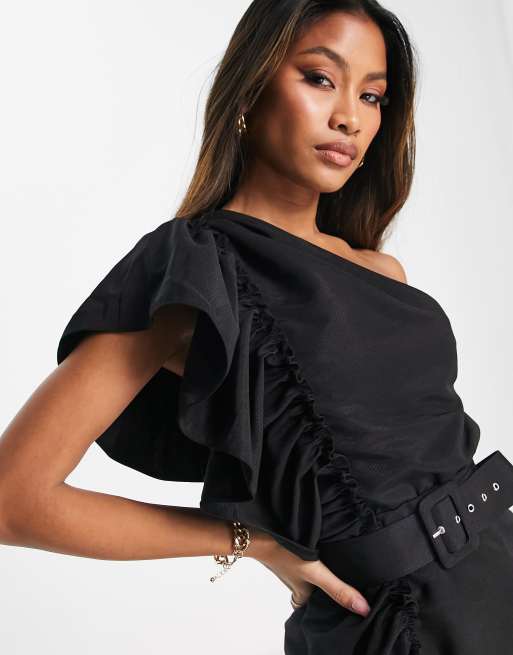 Product id: Black frill waist top belted blazer dress
