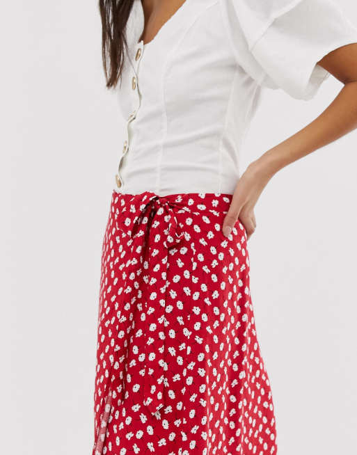Product id: New look wrap midi top skirt in red pattern