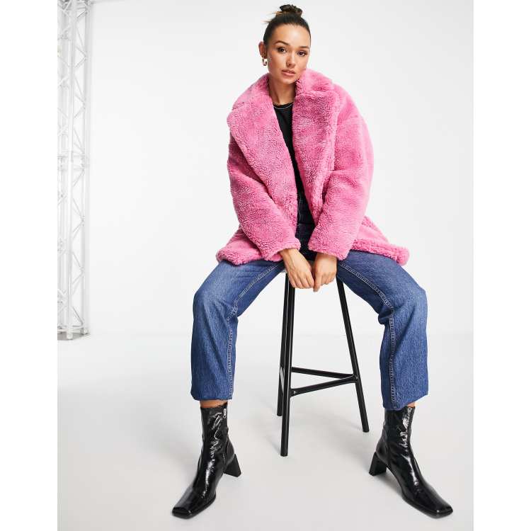Product id: Pink teddy top bear coat topshop