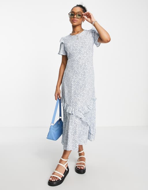 Product id: White floral print top frill detail midi dress