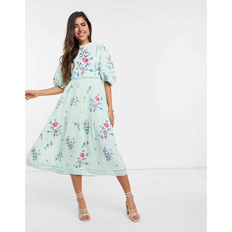 Product id: Asos design embroidered midi top dress with lace trims